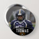 Show your support for your favorite football player this season with this personalized picture player game day button. Customize with your player's name, number, and picture! Perfect for senior night or parents night! Go team!