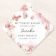 Add a touch of elegance to your baby shower with this personalized pink butterfly coaster.