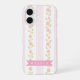 Personalized pink feminine coquette floral striped iPhone 16 hülle