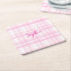Personalized Pink Plaid Paper Coaster with Name Rechteckiger Pappuntersetzer