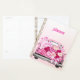 A soft pink watercolor planner cover featuring a cute vintage truck filled with flowers, gifts, and hearts.