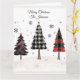 Send warm holiday wishes with this cozy personalized Christmas greeting card featuring three plaid Christmas trees in classic buffalo check and rustic neutrals. The soft watercolor snow scene, hand-drawn snowflakes, and farmhouse style create a charming winter design your loved ones will adore.