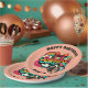 A fun surprise birthday party paper plate with a retro pop art comic book style in pink, yellow, teal giving it a vintage vibe. You can even add the birthday girl's name and photo in the personalize area.