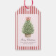 Add a touch of preppy coastal charm to your holiday wrapping with this elegant Christmas gift tag featuring a watercolor evergreen tree tied with a red bow. Set against soft sea-glass stripes, this tag blends Southern sophistication and timeless grandmillennial style. Personalize the text to make each present feel extra special and perfectly coordinated with your classic holiday stationery.