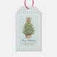 Add a touch of preppy coastal charm to your holiday wrapping with this elegant Christmas gift tag featuring a watercolor evergreen tree tied with a red bow. Set against soft sea-glass stripes, this tag blends Southern sophistication and timeless grandmillennial style. Personalize the text to make each present feel extra special and perfectly coordinated with your classic holiday stationery.