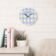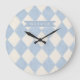 Personalized Preppy Soft Blue Fuzzy Argyle Name Große Wanduhr