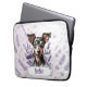 A charming custom laptop case featuring a hand-drawn Miniature Pinscher named BoBo, surrounded by soft lavender blooms for a unique and elegant look.