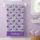 This nautical watercolor tropical fish beach towel design is complete with a seamless pattern of purple angelfish as well as pretty lavender purple background color and a place to add your name.