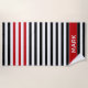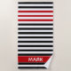 Striking cabana stripe beach towel with black,red and white striped pattern. Personalize with your name.