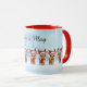 A cheerful and fully customizable Christmas mug featuring a line of adorable reindeer wearing Santa hats and scarves, set against a snowy landscape. Easily personalize this mug with a name, family surname, or short festive message to create a unique and heartwarming holiday gift. This festive mug is part of the **Winter Light** collection, making it a perfect, memorable gift for Christmas morning, holiday parties, or as a thoughtful present for a teacher or colleague.