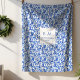 Personalized Royal Blue Floral Toile Cozy Blanket Sherpadecke