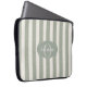 Personalized sage green striped laptop sleeve with custom name detail, featuring a soft linen texture and classic farmhouse design. Perfect for everyday organization with a clean, neutral, and elegant style.