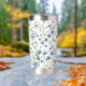 This personalized thermal tumbler features a delicate pattern of wildflowers paired with a classic monogram initial. Soft pastel florals and greenery create a timeless botanical look. The centered initial adds an elegant individual touch while maintaining balance and clarity against the floral background. A beautiful choice for those who love floral design, rustic aesthetics, and customized everyday essentials, the thermal tumbler makes a charming and useful gift for a birthday or Mother's Day. Ideal for country picnics, relaxing in the garden and bringing a touch of nature with you on your travels.
