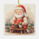 Celebrate the holidays with a unique blend of Christmas magic and gardening passion! This delightful personalized ceramic ornament features a charming watercolor illustration of Santa Claus, dressed in his classic hat and red overalls, happily tending to his miniature succulent and cactus garden.