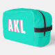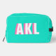A modern stylish pink and aqua green shadow monogram custom accessory bag. Easy to customize. Makes a great gift for friends, family, bridesmaids, coworkers, college students, travelers, and more.