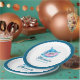 These personalized paper plates are part of the Waterpark Splash Birthday Collection. Designed in bold blue tones and featuring a fun shark illustration, this tableware adds an energetic and playful touch to boys’ pool parties and waterpark-themed birthday celebrations. Customized with the birthday child’s name, these plates are perfect for summer birthdays, pool parties, and water slide events. A vibrant and practical party detail that completes any boys’ party table.