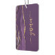 Personalize this elegant modern design with your name in vertical gold-colored signature handwriting script on a purple background with a border of purple watercolor agate trimmed with gold faux glitter. (To keep the swashes at the beginning and end of the name, replace only the letters, leaving the symbols in place.)