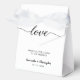 Add a touch of elegance to your celebration with this large tent-style wedding favor box featuring a beautiful satin bow. The modern script font highlights the word "Love", making it a heartfelt and stylish addition to your reception decor. Easily personalize with the bride and groom's names, wedding date, and a special thank-you message. Its minimalist black and white design makes it a timeless option for any wedding theme—classic, modern, or romantic. Available in multiple bow color options to coordinate with your color scheme.