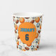 Add a fun and personal touch to your party table with these custom birthday paper cups featuring a playful all-over pattern of sports balls and personalized with the birthday child’s name and age number. The bright, energetic design is perfect for kids who love basketball, soccer, football, and baseball.