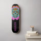 Bei bold in your face edgy day of the dead skateboard with painted sugar skull in orange, turquoise and hot pink haben wir chalkboard background with a quirky gemacht.