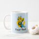 Customizable Mug with an illustration of a cute super hero bee with a cape in action pose, with custom text template for your name or message, illustration by MaxiHarmony / Radka Kavalcova