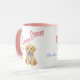This irresistibly charming mug features a watercolor illustration of an adorable golden puppy with a cheerful bow tie, paired with the sweet phrase "Sweet Dream." The gentle colors and cute design make this an uplifting start to any morning or a cozy companion for an evening tea. This charming mug can be personalized with a custom name, making it a wonderful gift for dog owners, new parents, children, or anyone who loves cute animal art.