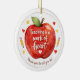 Celebrate an amazing educator with this charming teacher ornament featuring the heartfelt phrase “Teaching is a work of heart.” Designed with colorful school-themed accents and optional personalization, this ornament makes a thoughtful keepsake for the holidays or end-of-year appreciation. Add a teacher’s name, grade, or year to create a meaningful gift they’ll treasure for years to come. Perfect for teacher appreciation, classroom gifts, or holiday thank-yous, this ornament is a beautiful way to recognize the dedication and care teachers bring to their students every day.