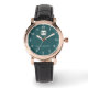 Discover timeless sophistication with this personalized women’s watch designed in a refined teal color palette. The clean dial layout showcases golden accents and an elegant monogram feature, creating a minimalist yet luxurious look.
