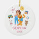 Personalized holiday bauble featuring a beloved children's educational character and friends. A sweet, custom gift for the toddler, infant, or baby girl in your family this Christmas.