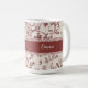 Add a touch of timeless, rustic elegance to your home with this beautiful personalized ceramic mug. The design features a delicate botanical pattern inspired by classic Toile de Jouy fabric in soft brown and taupe tones. The central band provides a stylish space for complete customization. You can easily personalize this mug with a name, a special date, or a meaningful message, making it a wonderful housewarming, anniversary, or wedding gift.