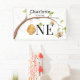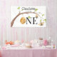 Decorated your beautiful girl's turning one Birthday Party with this adorable banner featuring a gorgeous beehive design including a beehive hanging of a tree, beautiful buzzing bees Personalize this beautiful birthday party banner with girl's name.