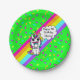 Fügen Sie den Namen und das Alter Ihrer Tochter zu diesem Happy Birthday Einhorn, Schmetterling, Regenbogen und Sprinkles Mädchen's rosa und lila Geburtstag Party Papier Teller.