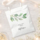This favor bag is decorated with watercolor greenery and stylish script typography. Easily customizable. Original Watercolor © Michele Davies.