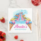 These colorful personalized paper napkins are part of the Waterpark Splash Birthday Collection. Featuring cheerful illustrations of water slides and ice cream, this fun and vibrant design brings a playful summer vibe to any celebration. Customized with the birthday child’s name, these napkins are perfect for pool parties, waterpark-themed birthdays, and summer celebrations for kids and teens. A bright and joyful table detail that completes your party setup.