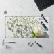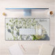 Elevate your workspace with this realistic drawing of a creamy white rose and airy baby's breath on a textured white background. Add your name or message for a custom, minimalist touch, perfect for floral lovers seeking serene style.