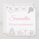 A chic and elegant way to ask your closest friends. This personalized bridesmaid proposal card features sweet dusty rose line art of wedding essentials like a ring, flowers, and cake. Simple, modern, and customizable with any name.