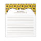 Yellow sunflower flower and wood or woodgrain pattern personalized notepad. You can personalize the name on this custom notepad. Country, western design.