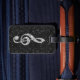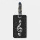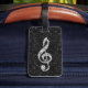 Eleganter, bezaubernder personalisierter Gepäck-Umbau mit ledernem Bügel. Schön, Blendungstrendy Druckbildsilber und -diamanten, die musikalische Anmerkung der Juwelen über einen funkelnd Glitter-Druckbildhintergrund des Chicschwarzen bling sind. Ein niedliches, nobles, modernes, stilvolles, hübsches Geschenk für sie oder irgendein Musikliebhaber.