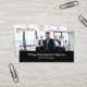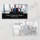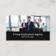 Vorlage für die Visitenkarte der Temp-Anstellung-Agentur in einem professionell gestalteten, zweiseitigen Layout mit einem Bild, das ein Team oder Bewerber für die Anstellung im Hintergrund repräsentieren könnte, das für einen Anstellung-Screening-Dienst, Personalvermittlungsdienste oder ein Team von Büroangestellten entwickelt wurde.