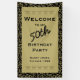 Personifizieren Sie: Willkommen zu meinem 50. Geburtstags-Party. Eine große Goldfahne mit schwarzem Text und den Vorlagen, zum sie einfach zu machen, damit Sie zu Ihren eigenen Wörtern ändern. Sie können allen Text unter Verwendung der gelieferten Vorlagen personifizieren. Das Zeichen wird mit Goldsternen und Haschlinien getrimmt. Ein großes Schwarz- und Goldgeburtstags-Partythema.