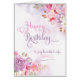 Pinkish/lila Blumenwatercolor u. Wäschen auf der Front der Karte hat "alles Gute zum Geburtstag zu meiner schönen Ehefrau" in einem schönen, Wirblen Schriftart und in einer Stelle, zum des Namens der Ehefrau einzufügen. Einfach gesagt entworfen durch vorbei Robin unter Verwendung der Elemente vom hungrigen JPEG.