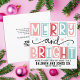 Versenden Sie feierliche Grüße mit der Merry And Bright Business Company Logo Personalisiert Holiday Card, die speziell für Unternehmen entwickelt wurde, die in dieser Ferienzeit einen bleibenden Eindruck hinterlassen möchten. Mit einem angesagten, farbenfrohen Design mit nostalgischem Retro und Vintagem Ambiente hebt sich diese Karte als stilvolle Art hervor, Urlaubsjubiläum mit Kunden, Mitarbeitern und Geschäftspartnern zu teilen. Passen Sie es mit Ihrem Firmenlogo an und fügen Sie eine persönliche Touch hinzu, die die Professionalität und Vorsicht Ihrer Marke widerspiegelt. Diese personalisierte Visitenkarte ist ideal für Unternehmen jeder Größe, die während der Festsaison mit ihren Kunden oder Mitarbeitern in Kontakt treten möchten. Egal ob Sie Bulk-Urlaubskarten verschicken oder individuell gestaltete Botschaften verschicken, das lebendige Design dieser Karte bringt Wärme und Freude für alle, die sie empfangen. Ohne Foto bleibt der Fokus auf Ihre individuelle Botschaft, Ihr Logo und die helle, fröhliche "Merry and Bright" Stimmung, die es ideal für Unternehmensumgebungen macht. Teilen Sie Ihre Wertschätzung und Dankbarkeit mit dieser Corporate Ferienkarte, ein perfektes Dankeschön an Sie Geschenk von Chef zu Mitarbeiter oder Firma zu Kunden. Die Mischung aus klassischem Urlaubscharme und modernem Design sorgt dafür, dass Ihre Karte unvergesslich und geschätzt wird, und ist somit eine ausgezeichnete Wahl für jedes Unternehmen, das den Urlaub auf berufliche, kreative Weise vermitteln möchte.