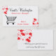 Eleganter persönlicher Käufer/Ehefrau für Mietgeschäfts-Karte, mit roten Blumen und einem schwarzen Einkaufskorb auf einem sauberen weißen Hintergrund. Fertigen Sie die Textbereiche mit Ihren Informationen über die vordere und Rückseite dieser eleganten Visitenkarte besonders an.