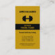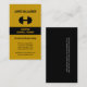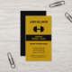 Eine grafisch mutige Visitenkarte für einen persönlichen Trainer, einen Turnhalleninhaber oder einen Trainer. Eine Silhouette eines schwarzen Dumbbell steht heraus gegen den goldenen Pinstripehintergrund. Ihr Titel oder Handelsname sitzt im auffallenden schwarzen Bar darunterliegend mit Ihren Kontaktinformationen unten gegen reiches Schwarzes. Fügen Sie alle Extrainformationen über das Aufmerksamkeit-Erhalten hinter hinzu. Verfügbar in den abwechselnden Farben mit zusammenpassenden Produkten.