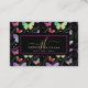 Persönlicher Name Elegant Lila Bright Butterflies Visitenkarte Diese eleganten floralen Visitenkarten mit Ihrem Namen und Ihrem Firmennamen oder Firmentitel in Flying bunten Schmetterlingen, Schmuckschmetterlingen und glühenden Nachtschmetterlingen auf schwarzem Texturhintergrund. Design mit Schmetterlingen, Personalisieren Sie Ihren Namen mit einer modernen eleganten Galaxie Glam. Geben Sie Ihren Namen und Ihre Kontaktdaten ein