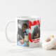personalisierte Kaffee-Tasse mit Herzen im Hintergrund