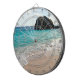Traum einer tropischen Insel oder genießen die tatsächlichen Ozeanbrisen, während Sie Pfeile mit dieser hübschen Strandszene spielen. Weicher rosa hued Sand und ruhiges Türkismeer.