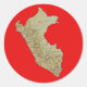 Auf diesem Aufkleber zentriert sich eine Karte Perus über einen farbigen Hintergrund. Halten Sie sich für peruanische Werte!