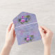 Eine weiche Aquarellmischung aus Blütenblättern, Blume und Tulpen mit Goldkonfetti. Ein angenehmes Design für Stoffdrucke, unsere für Wanddekoration. Diese blau-violetten Farben beleben den kreativen Geist für das Hochzeitspaar.