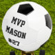 Name des personalisierten Fußballballspielers und zusätzliche Zeile für den MVP oder einen anderen Titel, z. B. Kapitän